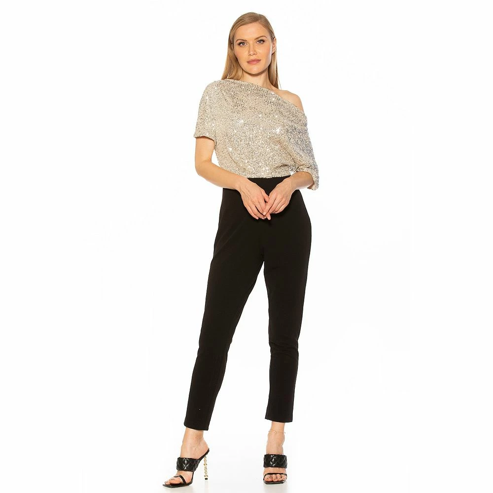 This draped women’s one-shoulder jumpsuit from ALEXIA ADMOR is stylish and classy, ensuring you stand out from the crowd.