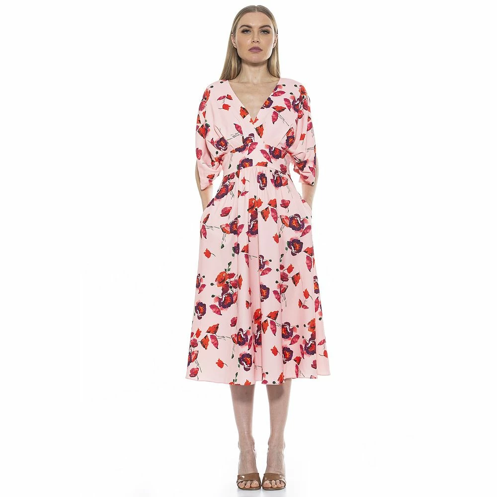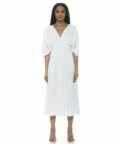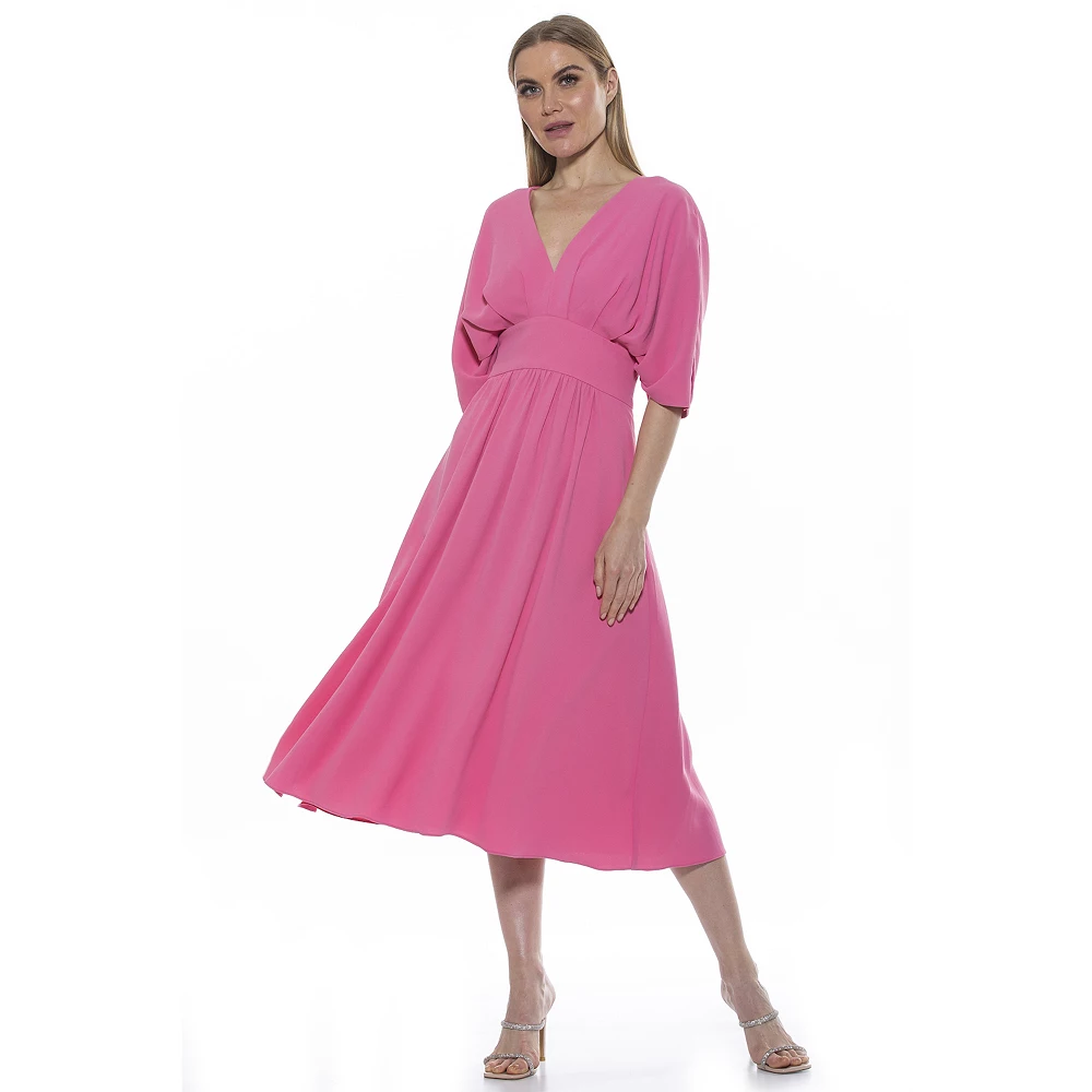 No matter the occasion, you’ll rest easy knowing that when you arrive in this women’s draped fit & flare midi dress from ALEXIA ADMOR, you’ll be the best dressed there.