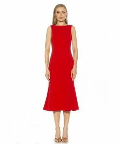 No matter the occasion, you’ll rest easy knowing that when you arrive in this women’s boatneck midi mermaid sheath dress from ALEXIA ADMOR, you’ll be the best dressed there.