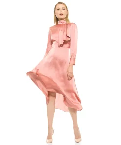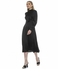 For a retro special-occasion look, reach for this women’s tie-neck fit & flare satin dress by Alexia Admor.