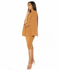 No matter the occasion, you’ll rest easy knowing that when you arrive in this women’s caped sleeve midi dress from ALEXIA ADMOR, you’ll be the best dressed there.