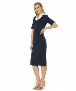 No matter the occasion, you’ll rest easy knowing that when you arrive in this collared women’s retro sheath dress from ALEXIA ADMOR, you’ll be the best dressed there.