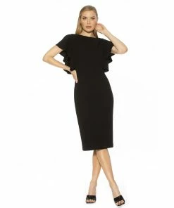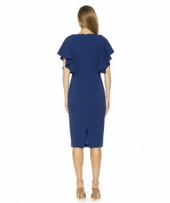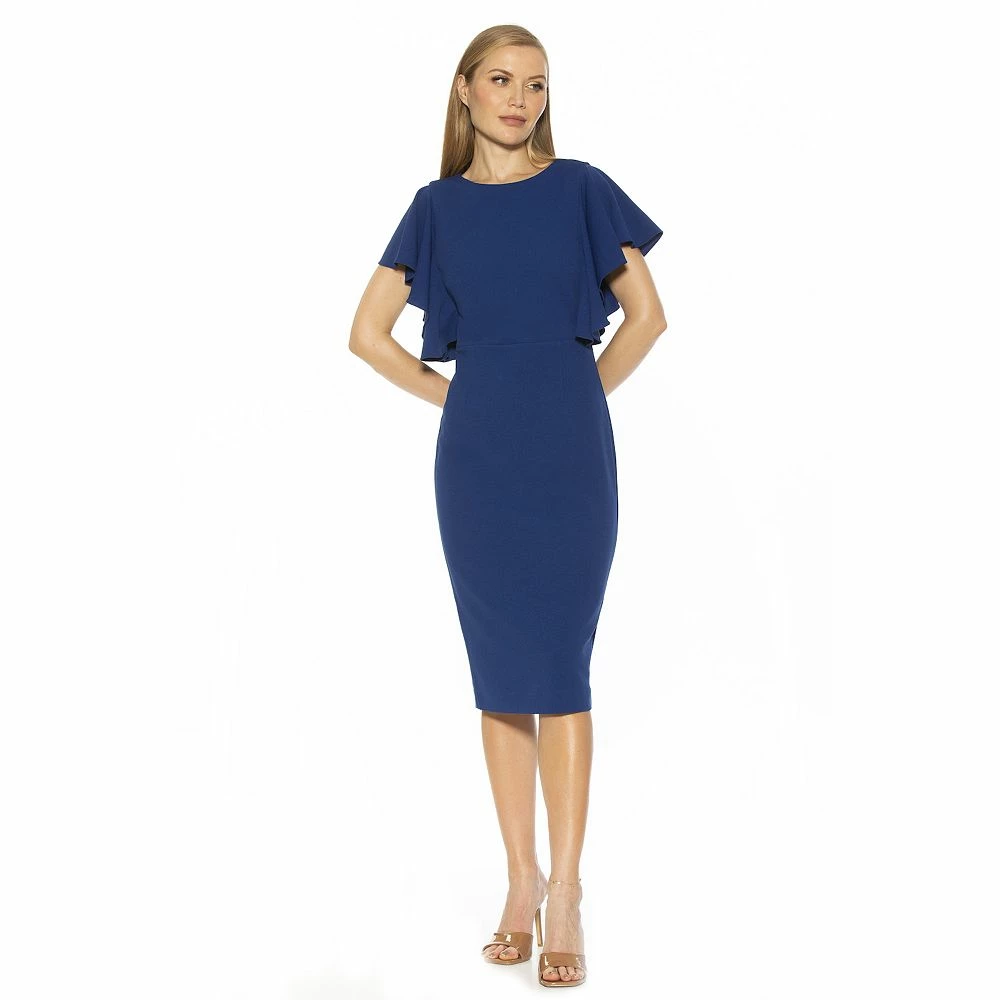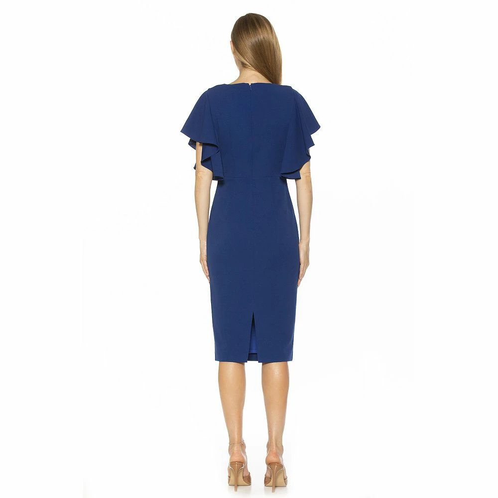 No matter the occasion, you’ll rest easy knowing that when you arrive in this women’s flutter midi sheath dress from ALEXIA ADMOR, you’ll be the best dressed there.