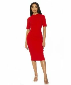 No matter the occasion, you’ll rest easy knowing that when you arrive in this women’s high neck midi sheath dress from ALEXIA ADMOR, you’ll be the best dressed there.