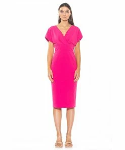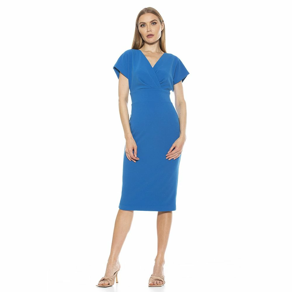 Effortless elegance is yours wearing this women’s ALEXIA ADMOR draped-bodice sheath dress.
