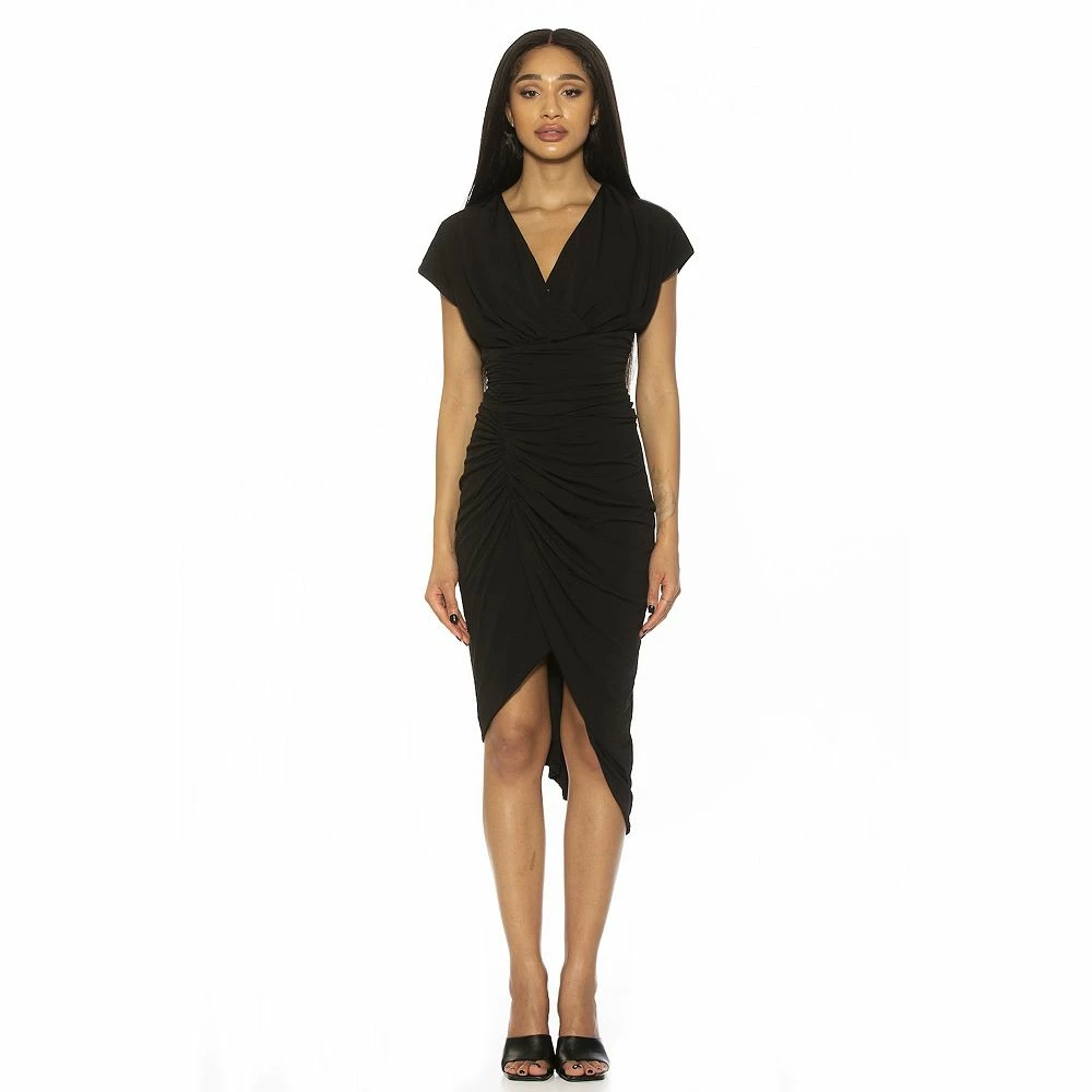 No matter the occasion, you’ll rest easy knowing that when you arrive in this ruched women’s high-low midi dress from ALEXIA ADMOR, you’ll be the best dressed there.