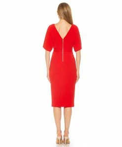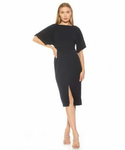 No matter the occasion, you’ll rest easy knowing that when you arrive in this women’s trumpet sleeve midi sheath dress from ALEXIA ADMOR, you’ll be the best dressed there.